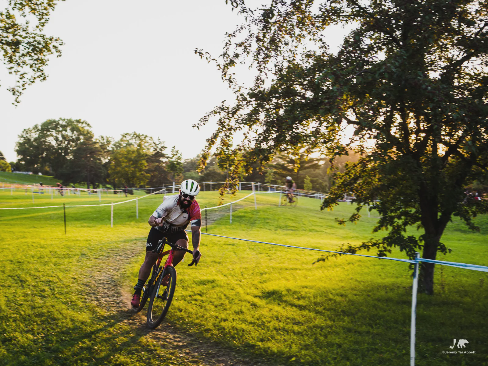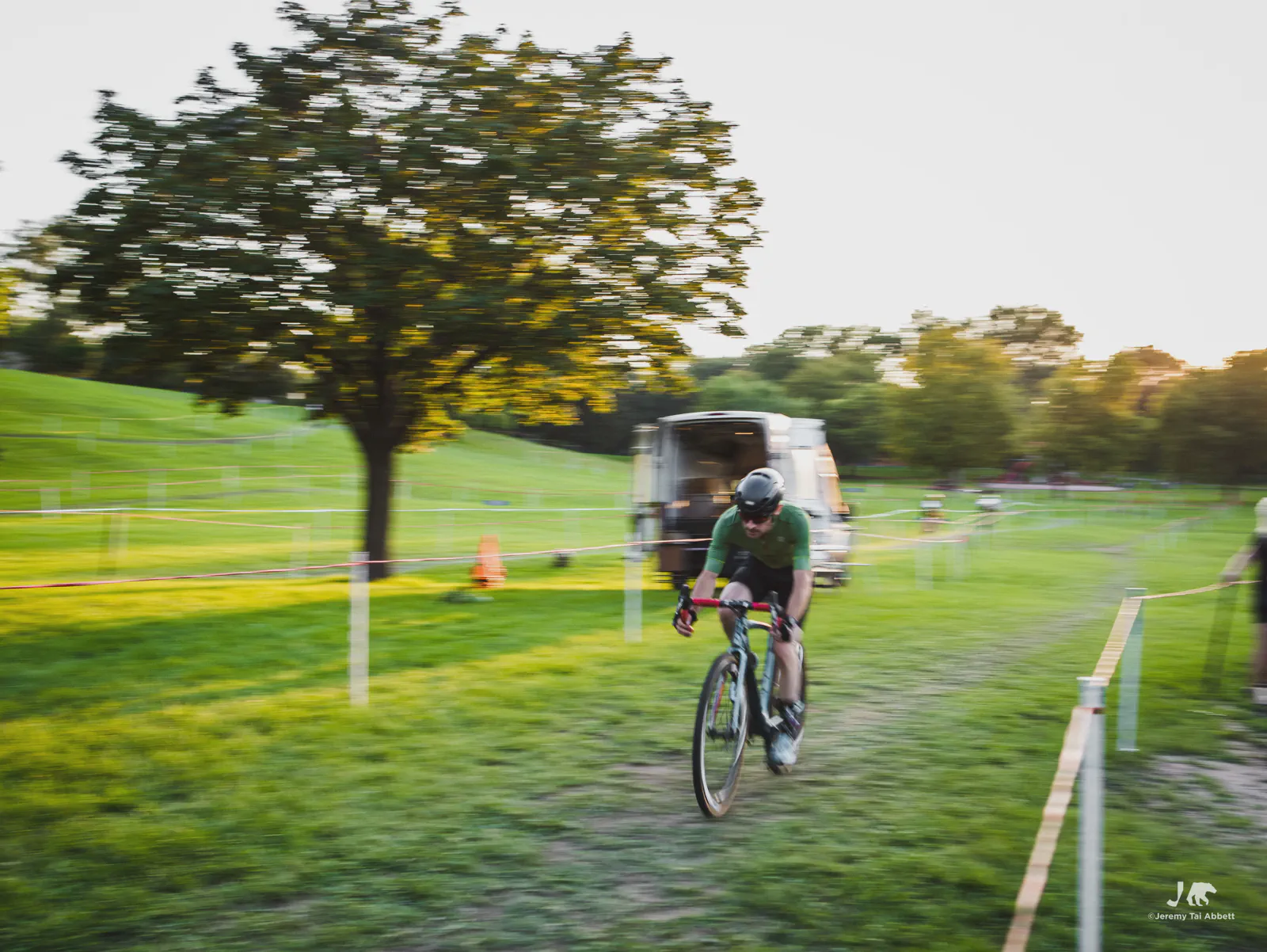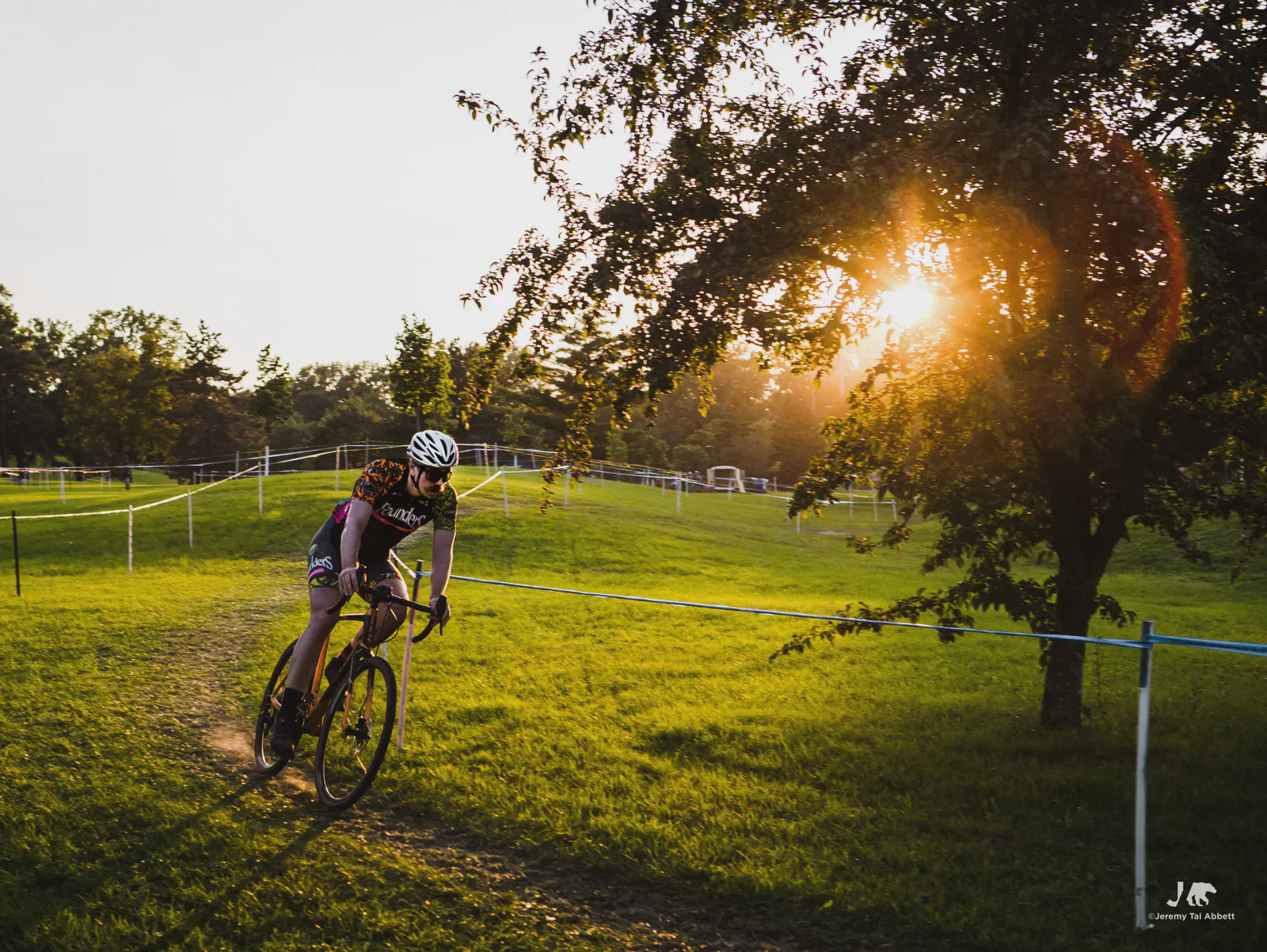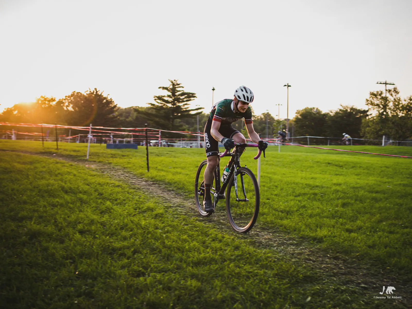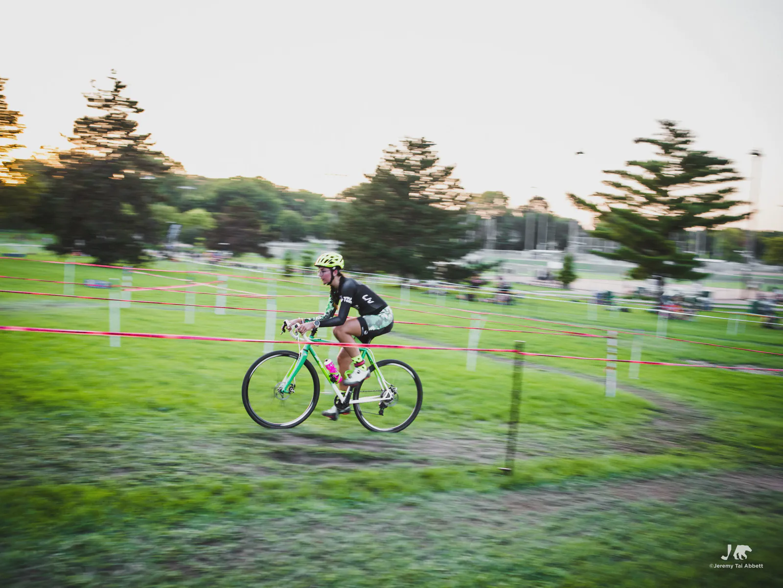 An 18:00 start with temperatures at 26°C (80°F) and humidity of 46% 🥵 was in complete contrast to what I’m used to cyclocross racing in Europe. Thank goodness the course was extremely forgiving as it snaked along 1.8km (1.11miles) of the grass-covered rolling hill of Aquila Park. There were no necessary dismounts (sand or barriers) which made for a fast and furious, blood-pumping forty-five minute race in the Intermediate/Masters/Women category I entered.