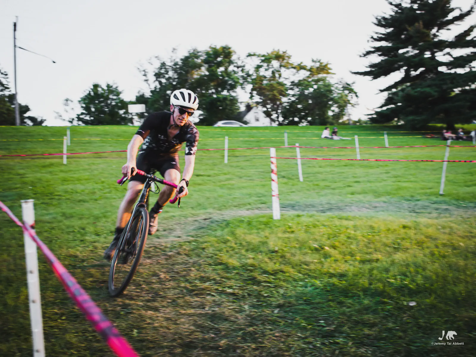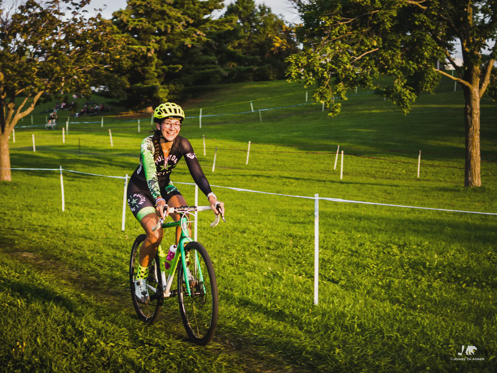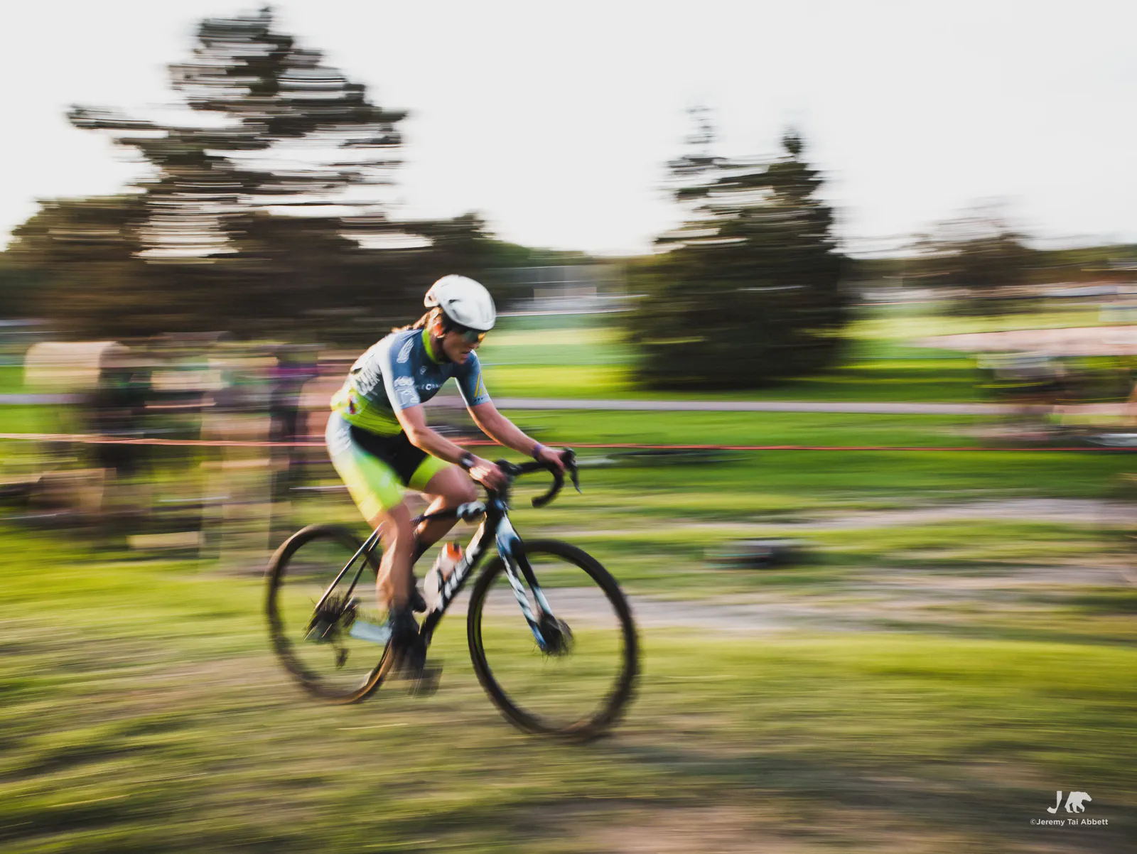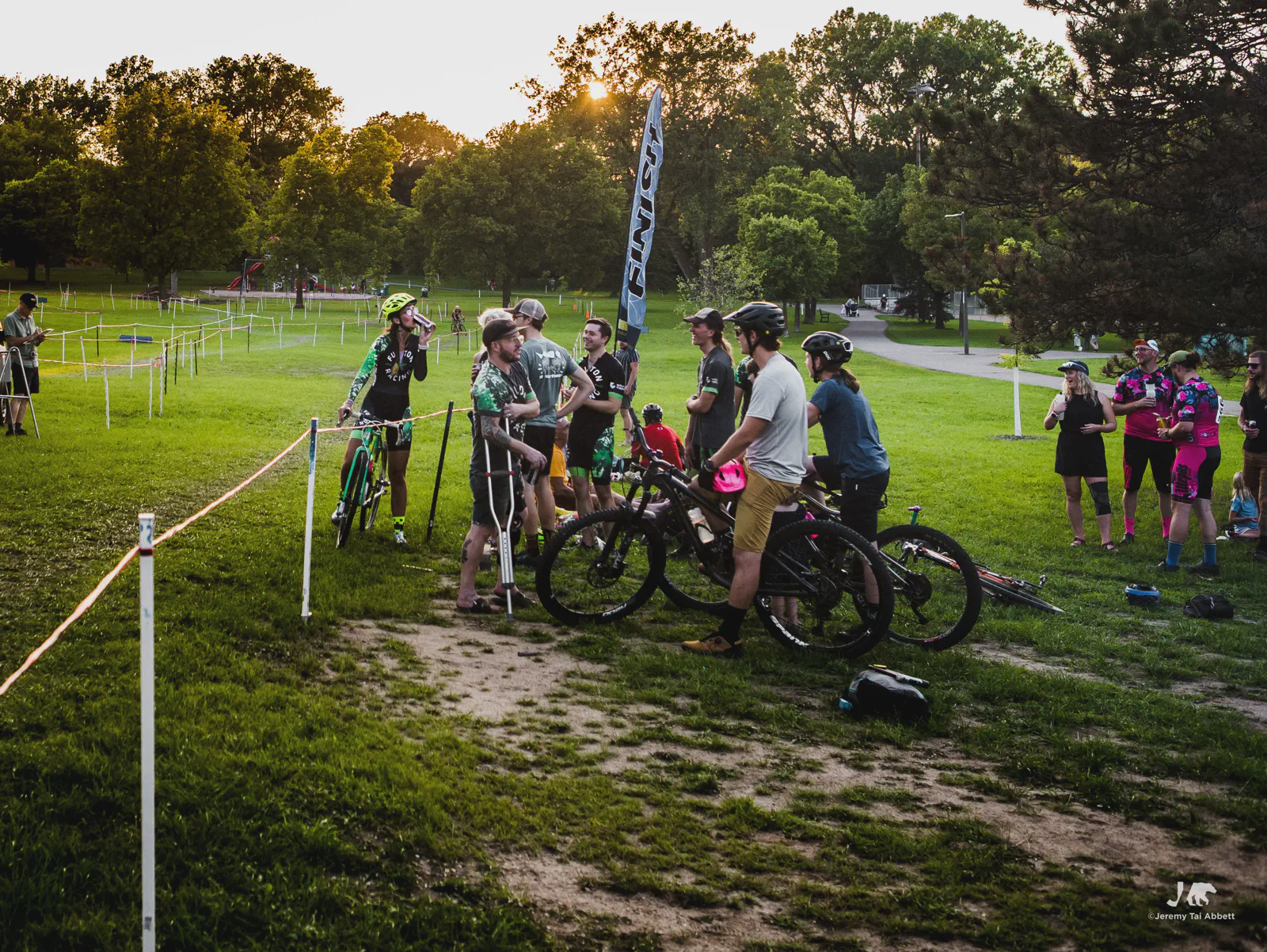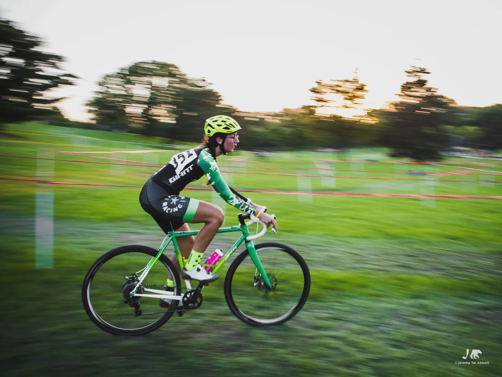 An 18:00 start with temperatures at 26°C (80°F) and humidity of 46% 🥵 was in complete contrast to what I’m used to cyclocross racing in Europe. Thank goodness the course was extremely forgiving as it snaked along 1.8km (1.11miles) of the grass-covered rolling hill of Aquila Park. There were no necessary dismounts (sand or barriers) which made for a fast and furious, blood-pumping forty-five minute race in the Intermediate/Masters/Women category I entered.