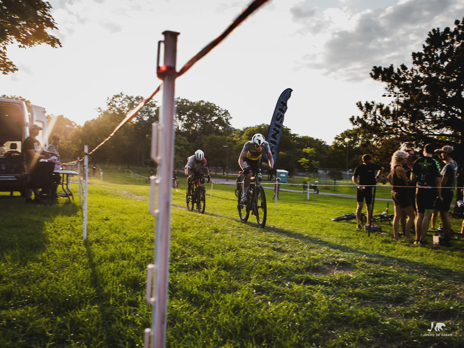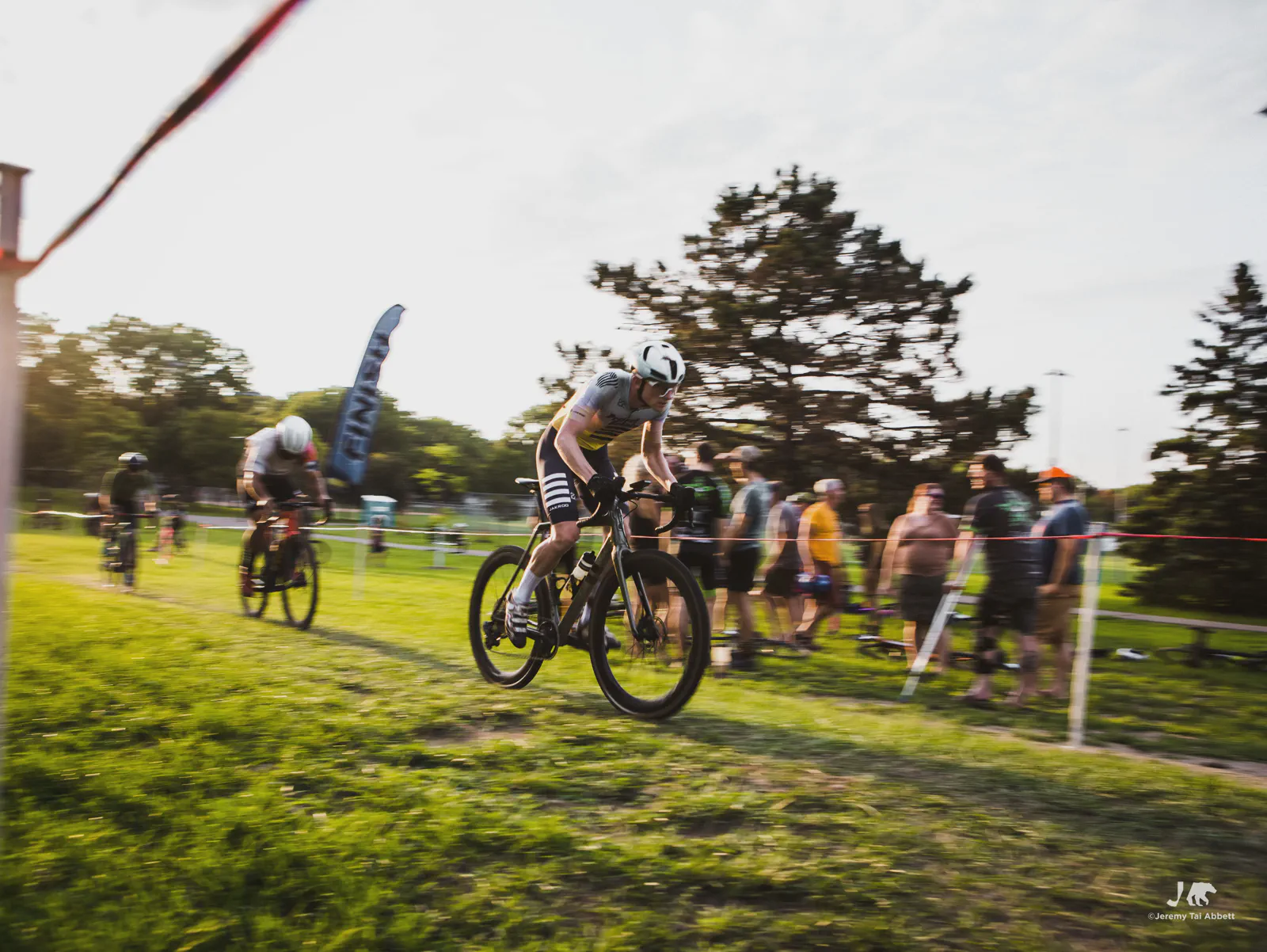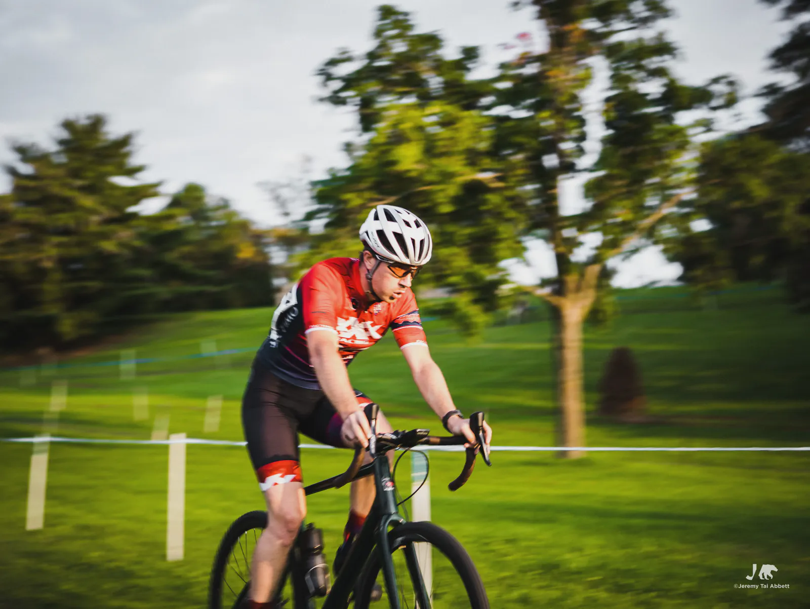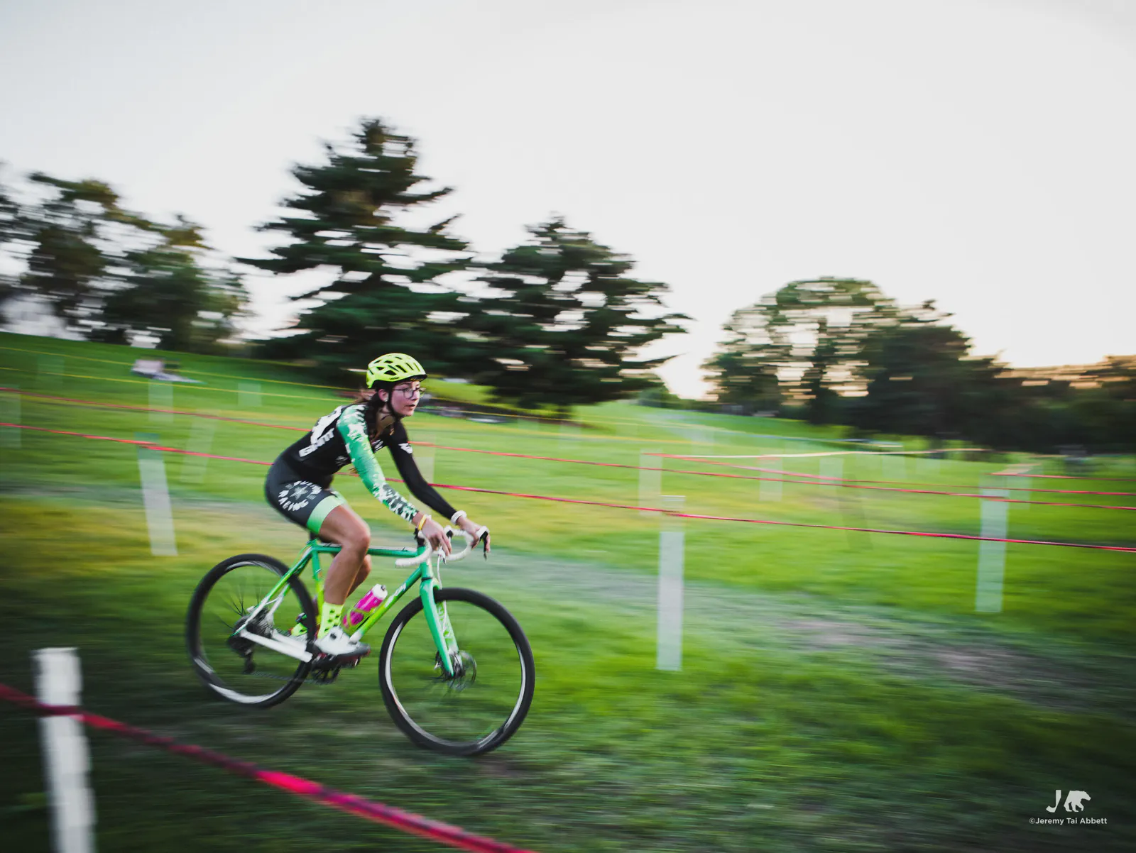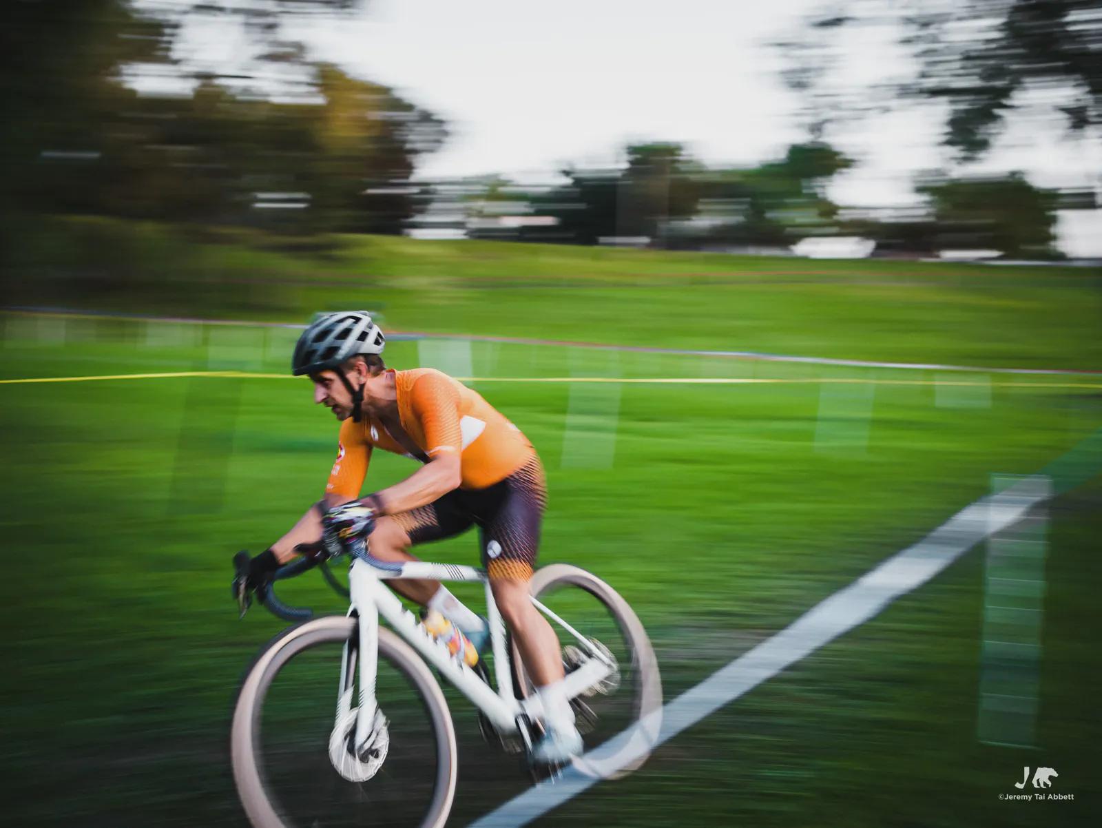 An 18:00 start with temperatures at 26°C (80°F) and humidity of 46% 🥵 was in complete contrast to what I’m used to cyclocross racing in Europe. Thank goodness the course was extremely forgiving as it snaked along 1.8km (1.11miles) of the grass-covered rolling hill of Aquila Park. There were no necessary dismounts (sand or barriers) which made for a fast and furious, blood-pumping forty-five minute race in the Intermediate/Masters/Women category I entered.