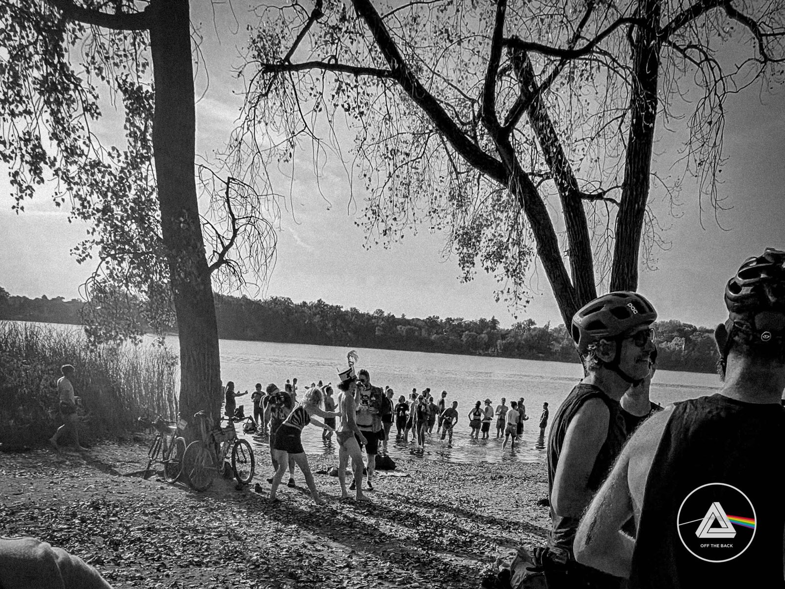 After a beer and some more mingling, Chelli handed the megaphone to Anders who lead us on a slow-roll to Cedar Lake to cool the feet as well as the palate as it was an unusually hot (30° C / 86° F) and humid kind of day. It was also here that the last of my group of four Skadi Sport Psychology scholarship recipients showed up; I recognized Amahl instantly and promptly introduced myself and the group.