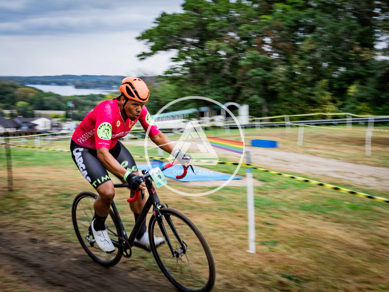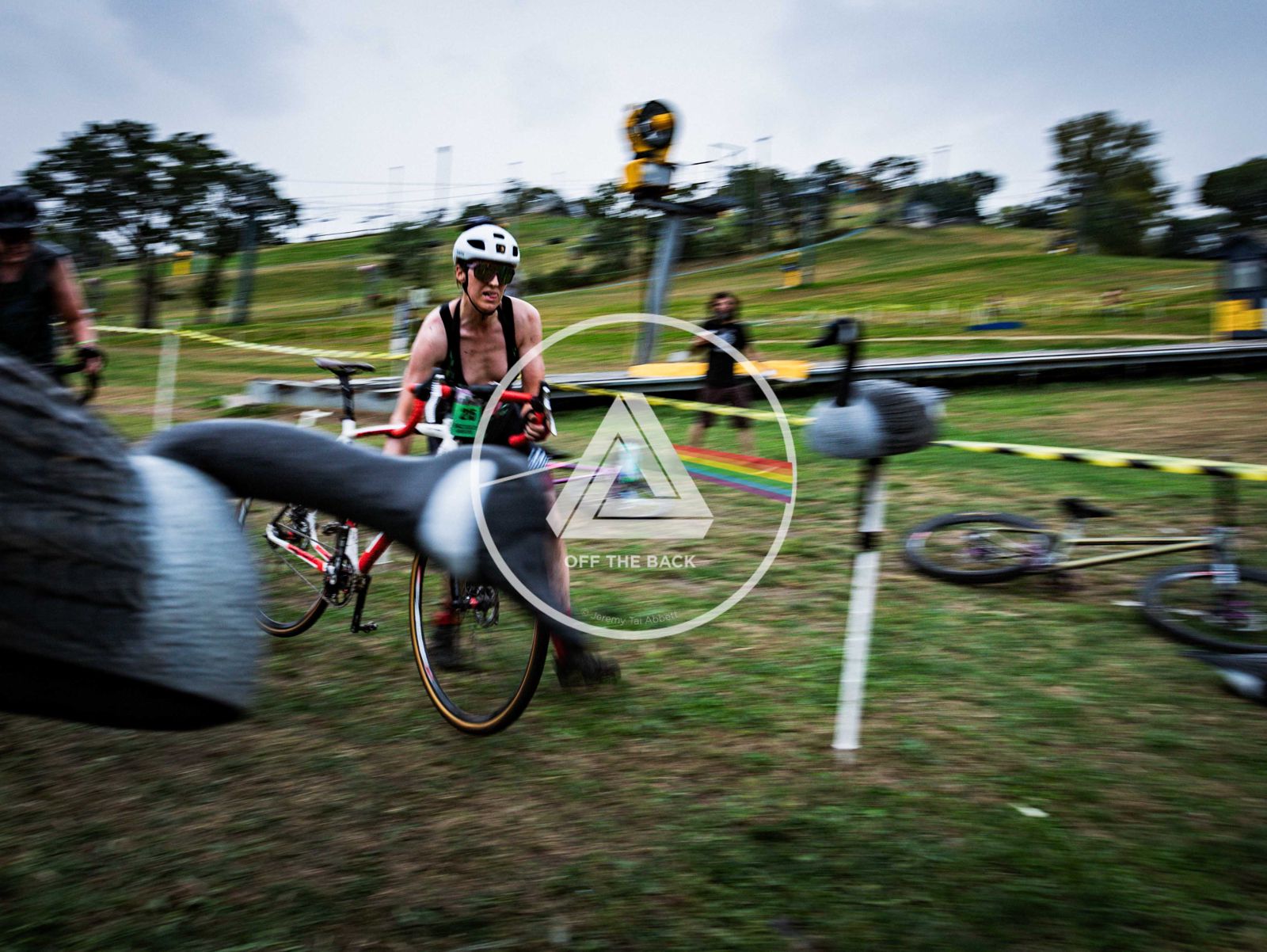 The course was challenging (ca. 405m of climbing on a single speed) with plenty of switchbacks, a hidden heckler wooded area, a launch ramp onto a inflated landing, and a mandatory dismount that crossed a speed boat. The biggest concern I had was the launch ramp as I am just not that confident in my ability to launch a bike. This is where I put most of my energy while pre-riding the course.